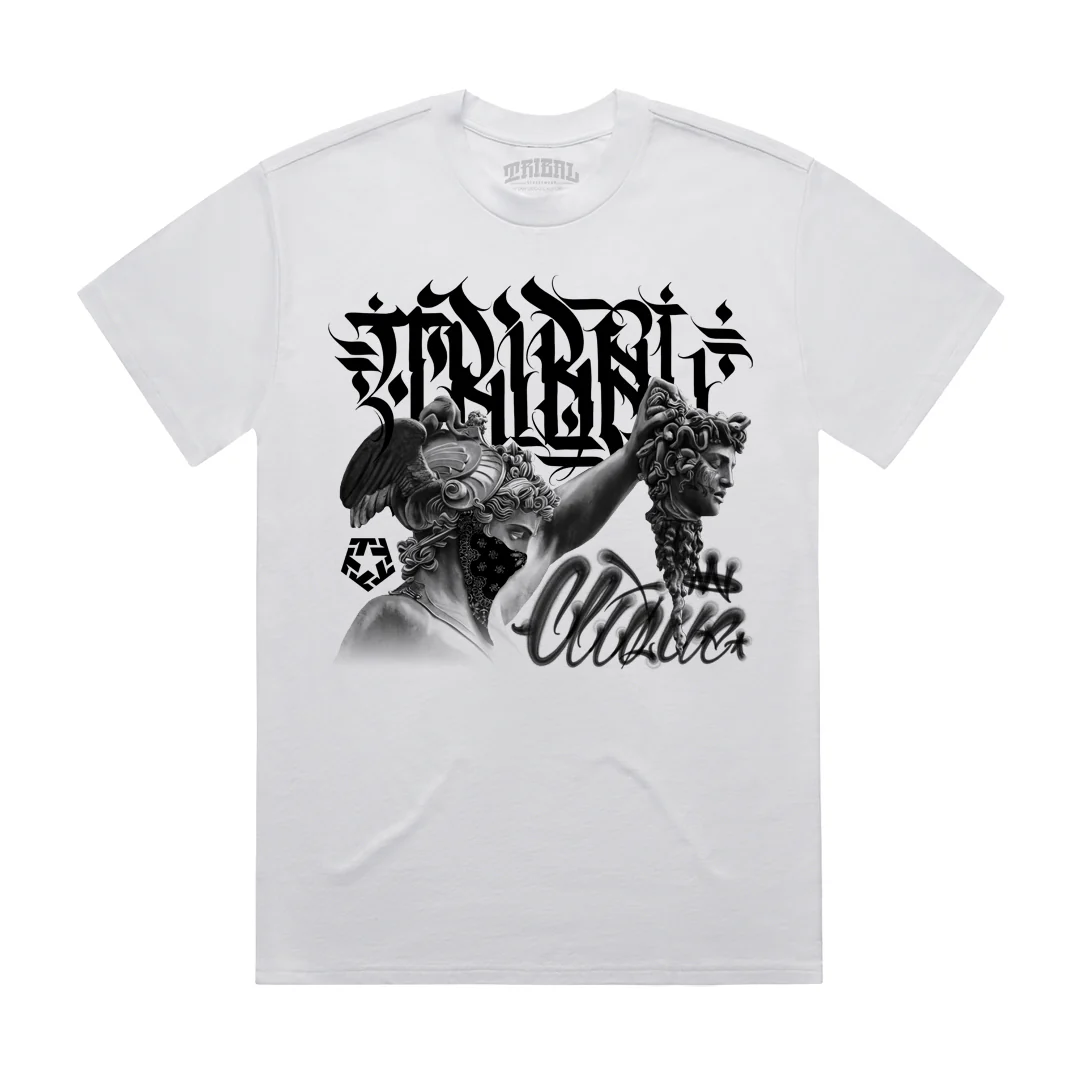 100% cotton Mens tee with āTAKING HEADSā print By TRIBAL STREETWEAR.